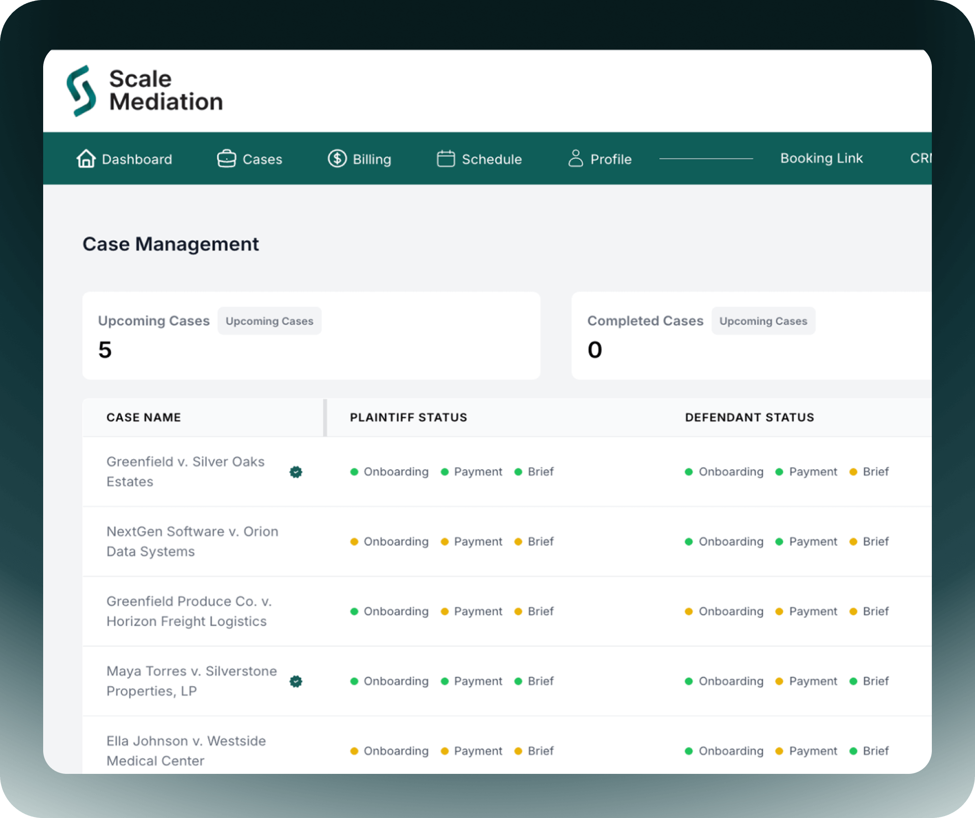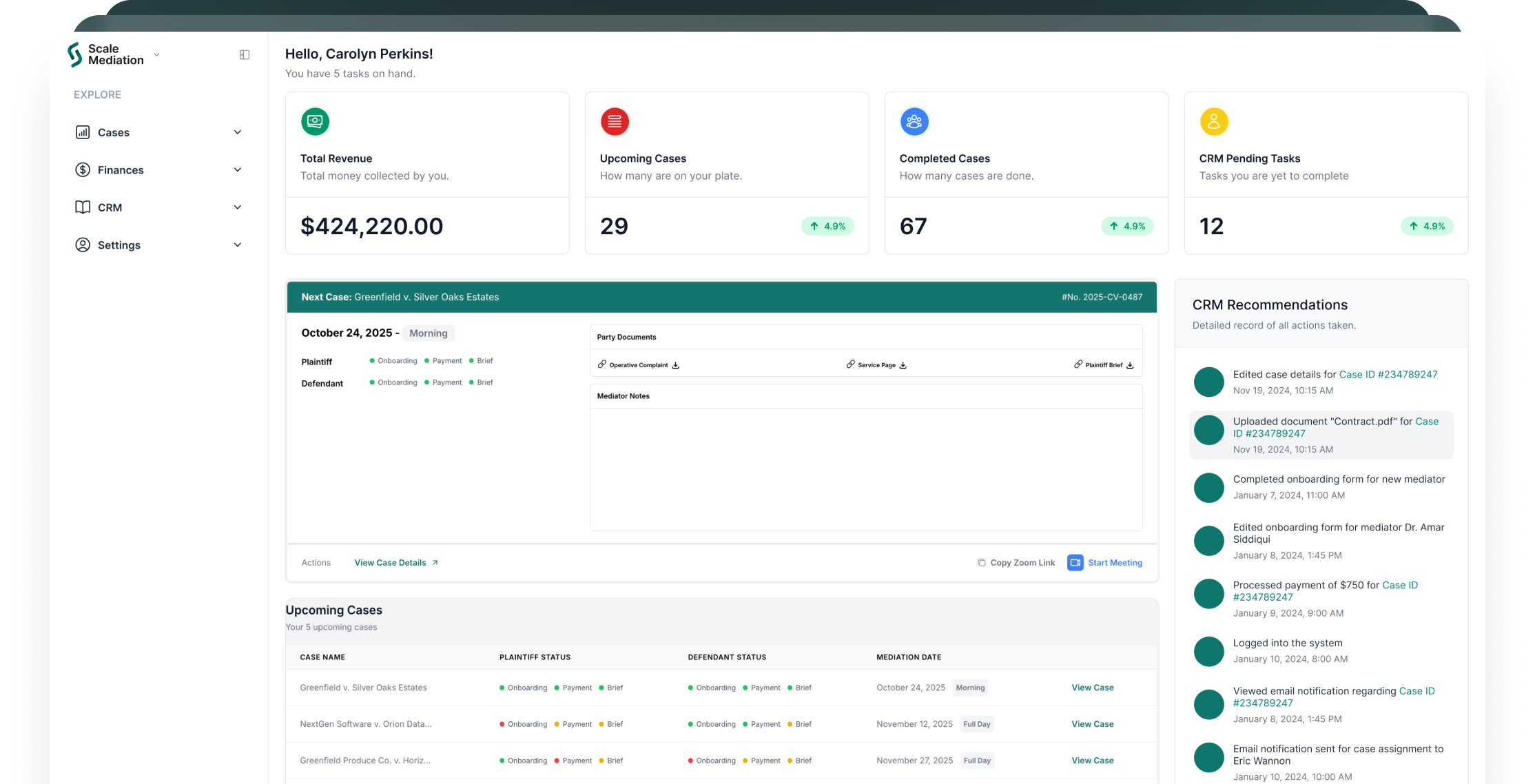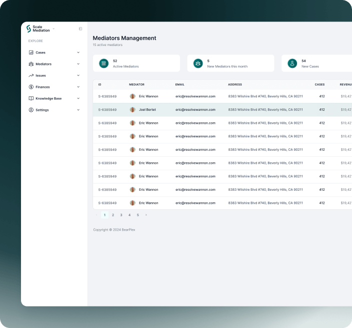 Seamlessly manage all your case files, track client progress, and store documents securely. With Scale Mediation, practice control is simple and intuitive.