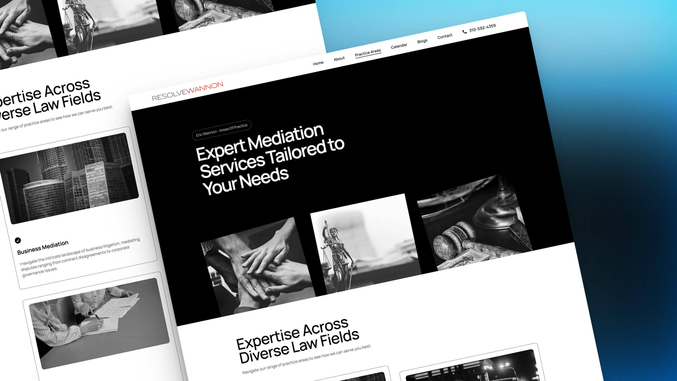 - Professional Website Design: Developed a sleek, user-friendly website that showcases Eric Wannon’s expertise, achievements, and services in mediation